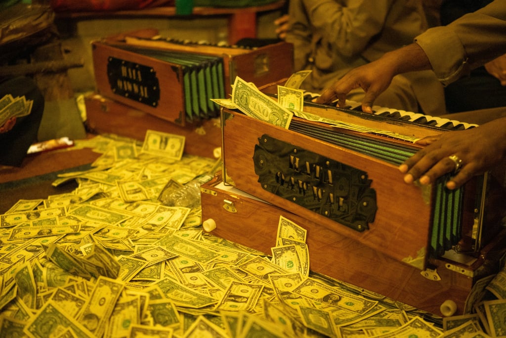 One man was having fun after donating a lot of one-dollar bills to the ensemble.