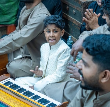 The young performer with Hamza Akram Qawwal and Brothers ensemble singing.