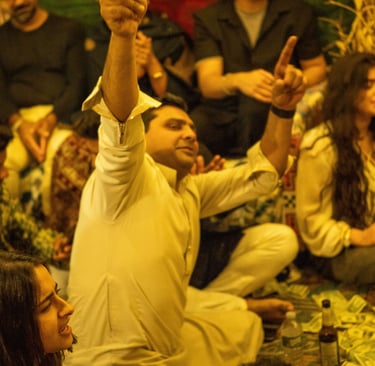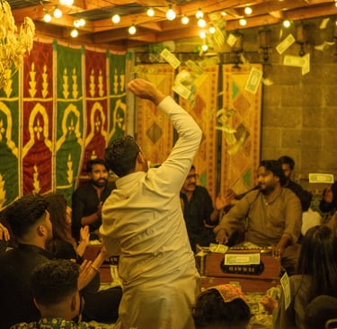 These photos are from the Qawwali event held at Barzakh Café on May 18, 2025 that featured Hamza Akram Qawwal and Brothers, a music ensemble from Karachi, Pakistan. The event was held in the backyard of the café. The group sang in true Qawwali style, which is without sound amplification. They also performed tirelessly for hours. People, danced, laughed, and connected with Sufi music, which is native to Muslim communities in South Asia and has built upon centuries of tradition. It that combines music, vocal sounds, and singing, with banter and poetry. It is meant to grab audience’s attention visually, acoustically and through meaning. It is a spiritual Sufi journey open to all.