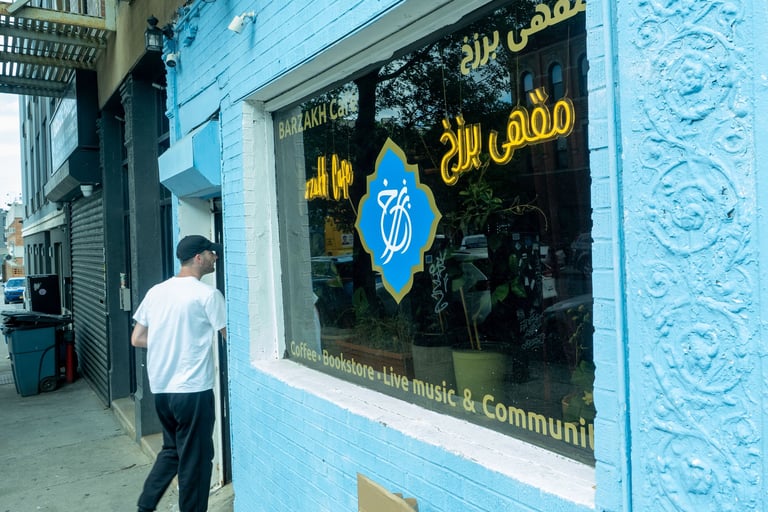 A patron enters Barzakh Cafe, in Crown Heights, Brooklyn.